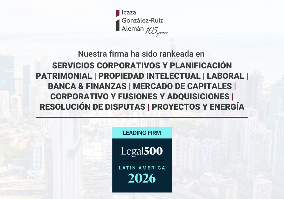 Icaza, González-Ruiz & Alemán ha sido reconocida en el ranking The Legal 500 Latin America 2026. En esta edición, la firma fue clasificada en varias áreas de práctica, incluyendo: